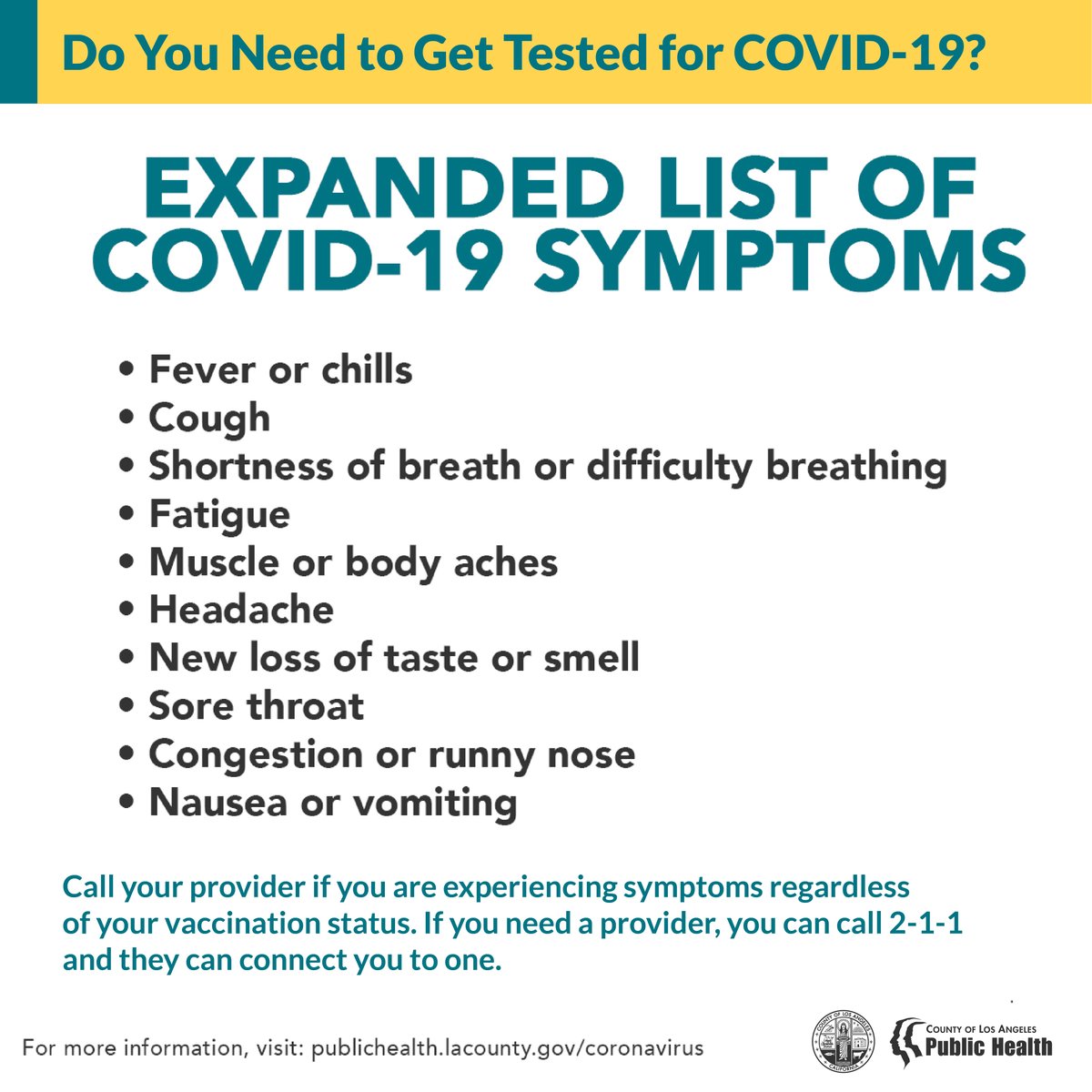 La Public Health On Twitter Get Tested For Covid 19 If You Re Experiencing Any Of These Symptoms Regardless Of Your Vaccination Status Visit Https T Co Wsadf2vzry For A Testing Site Near You Https T Co D9djah50hj